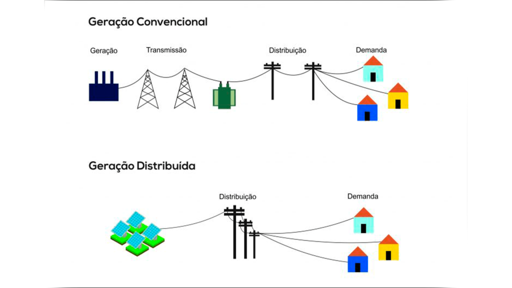 A geração distribuída consiste na produção de energia elétrica próxima ao local de consumo, utilizando fontes renováveis ou não, conectadas diretamente à rede de distribuição.